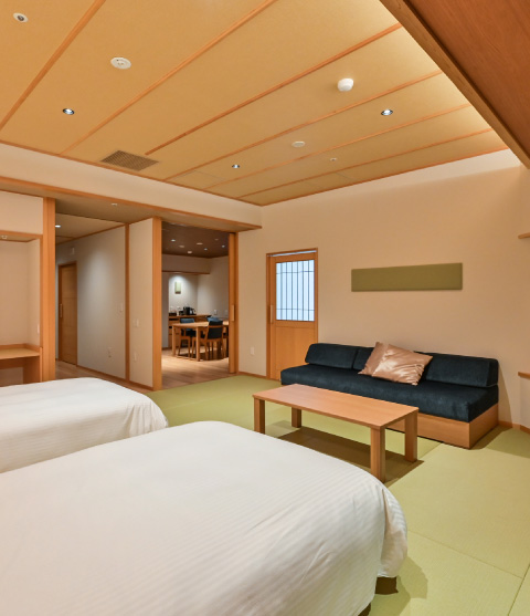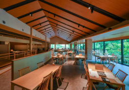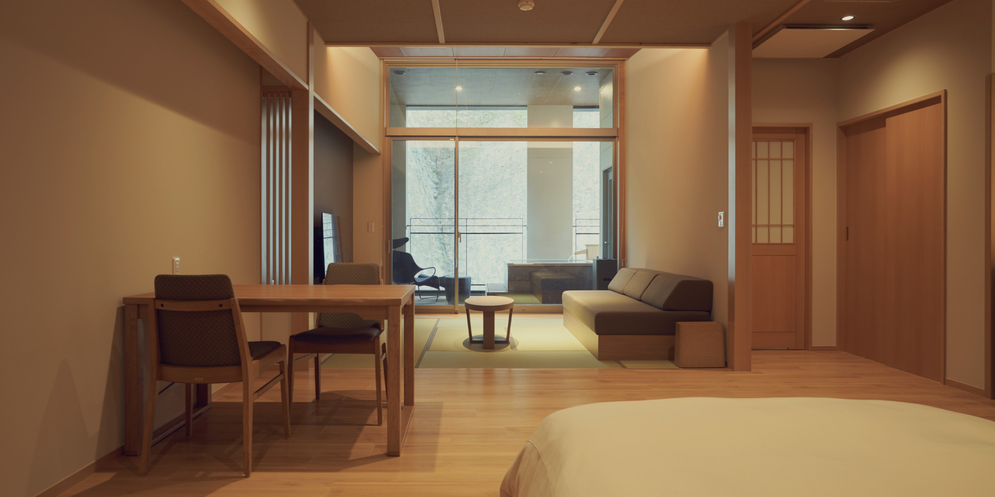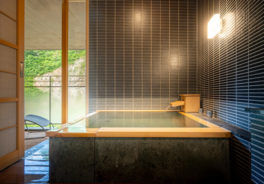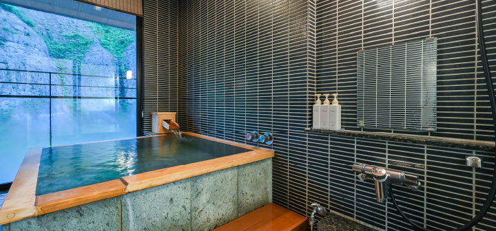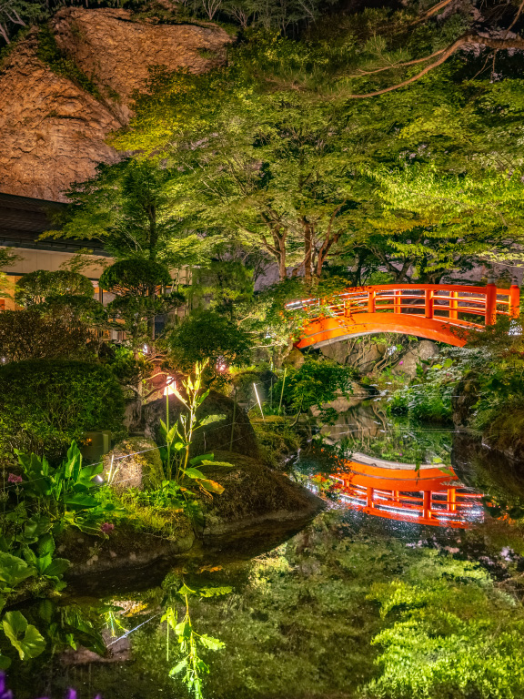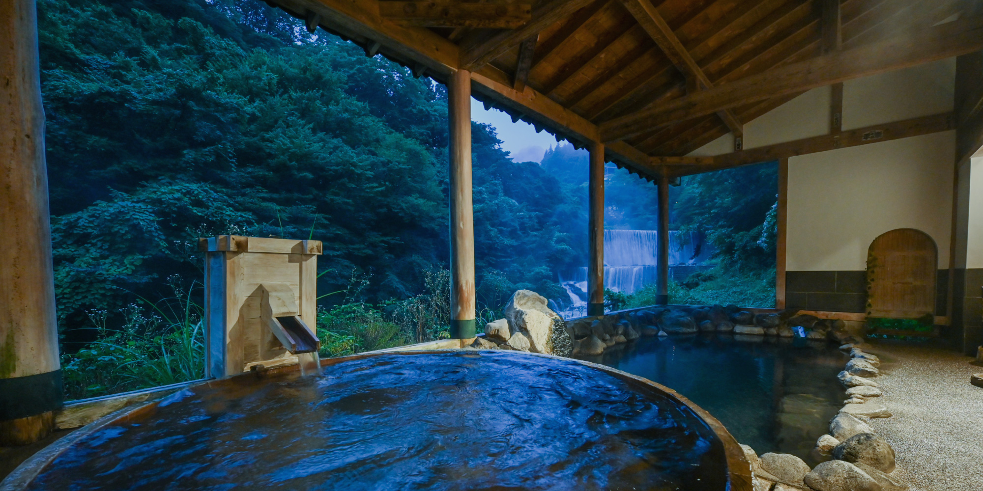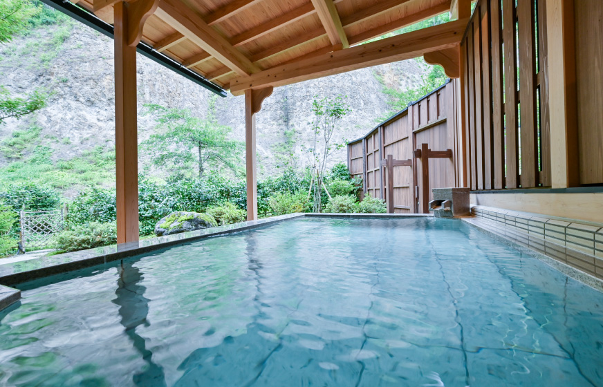 エントランスの水車の水音が奏でる、おもてなし。四季、時間帯によって表情を変える美しい庭園が癒しの時間を与えてくれます。