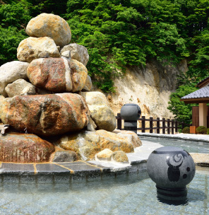秀峰吾妻山のふところに抱かれ清流荒川のたもとに佇む、土湯温泉。