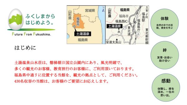 今後はホームページを整備し修学旅行をはじめとした教育旅行についての受入れ体制を整え、