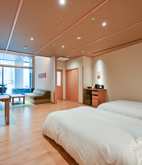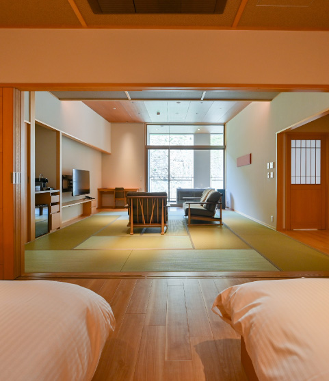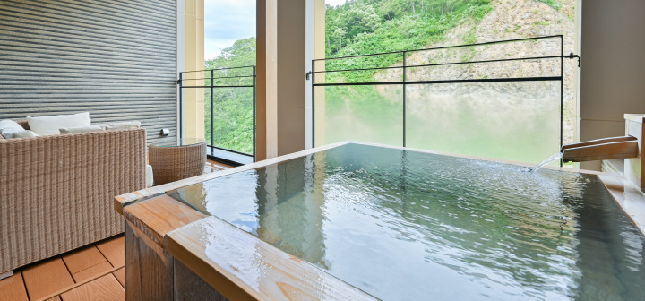 洗鍊且高品質的寬適空間。 在備有露天風呂或半露天風呂的特別客房中,感受四季變遷的氣息,與親愛之人共享美好時光。